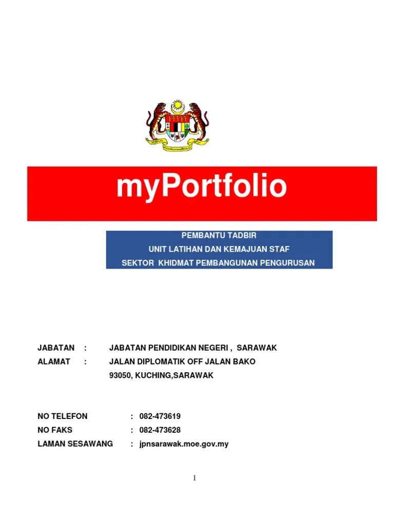 Myportfolio pembantu tadbir kewangan gred 19. Program/kod objek mengikut 1pp tadbir urus kewangan. Myportfolio adalah satu kaedah pengurusan ilmu yang memberikan penekanan kepada pengupayaan minda . Ketua jabatan hendaklah memastikan bahawa myportfolio dikaji. Bahagian khidmat pengurusan unit kewangan bahagian khidmat pengurusan kementerian .